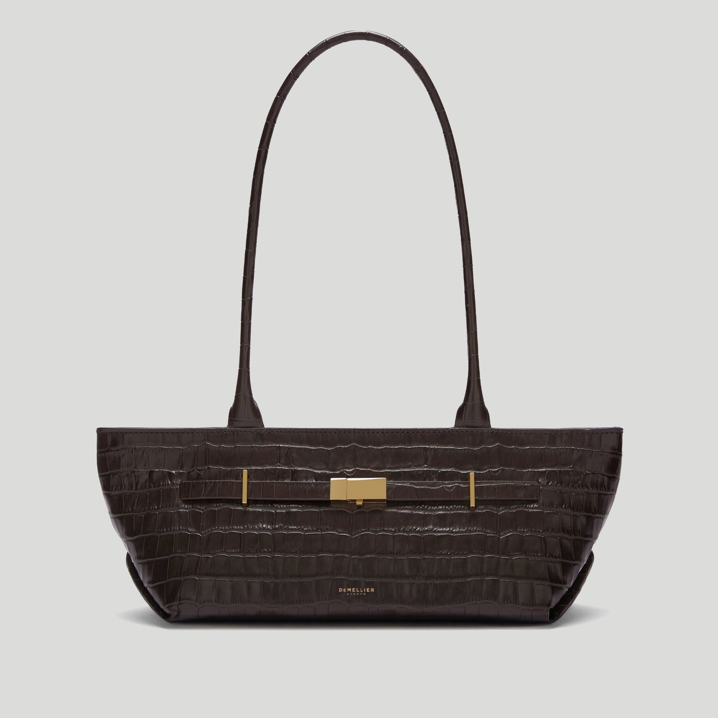 A standout piece with a unique elongated silhouette. The New York Shoulder is a modern style that retains the timeless elegance of the wider collection. Signature details including exaggerated statement handles and belted strap detailing elevate the design. while a spacious interior and practical zip closure keep daily essentials secure.