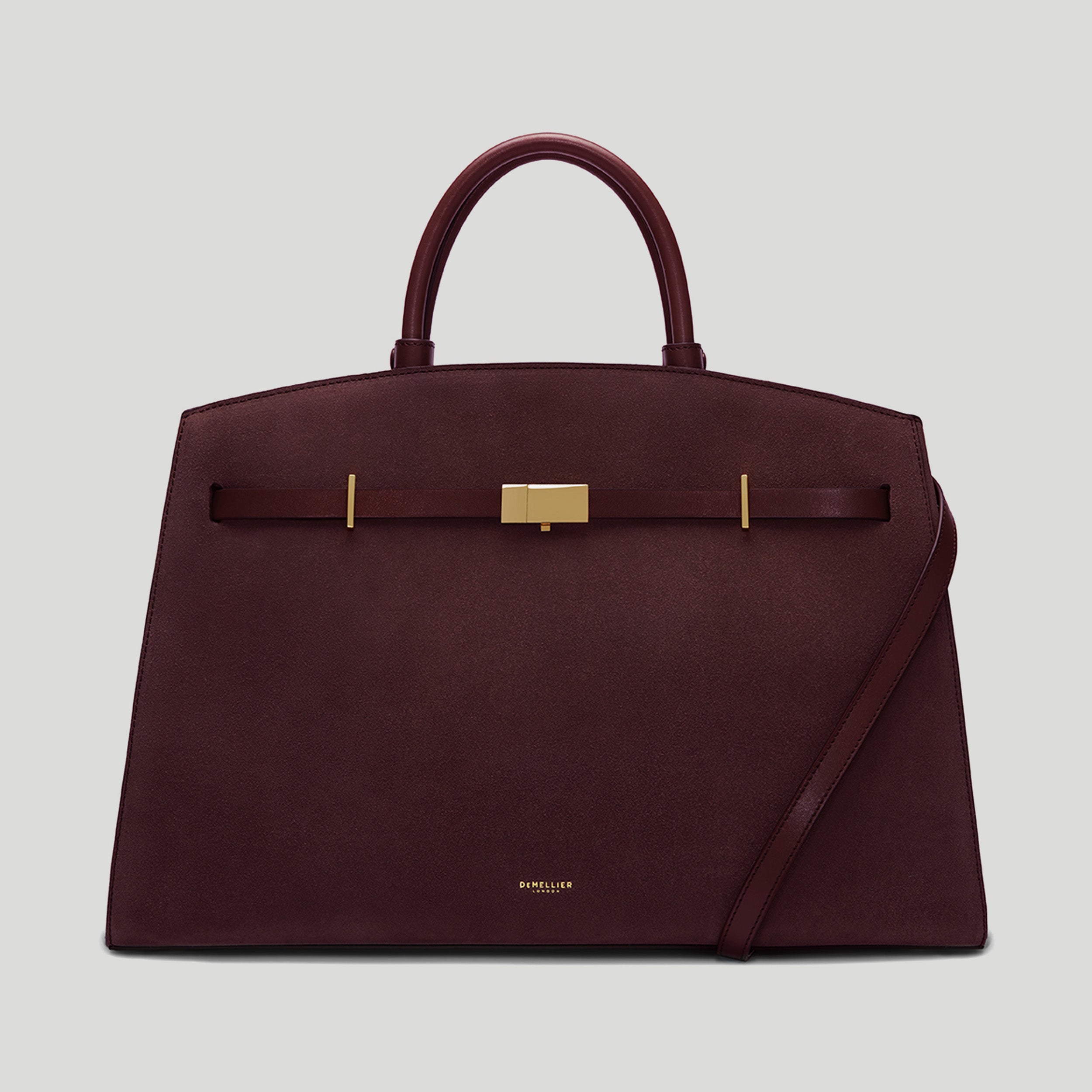 The Hudson is designed to empower. crafted to last. Featuring our signature belted strap and gold-plated lock. it embodies both strength and sophistication. Versatile and spacious. it adapts effortlessly to everyday needs. with expandable side panels that adjust with stud fastenings to provide extra space. Securely closed with a dog clip fastening. it ensures essentials stay safe. while the two leather handle holders keep the top handles neatly together. Complete with a top handle and an adjustable. removable strap for various styling options. this sophisticated day bag can be carried by hand. on the crook of the arm. or as a crossbody. Ethically made from sustainably sourced. LWG gold-rated Italian leather. The Hudson blends timeless style with contemporary refinement.