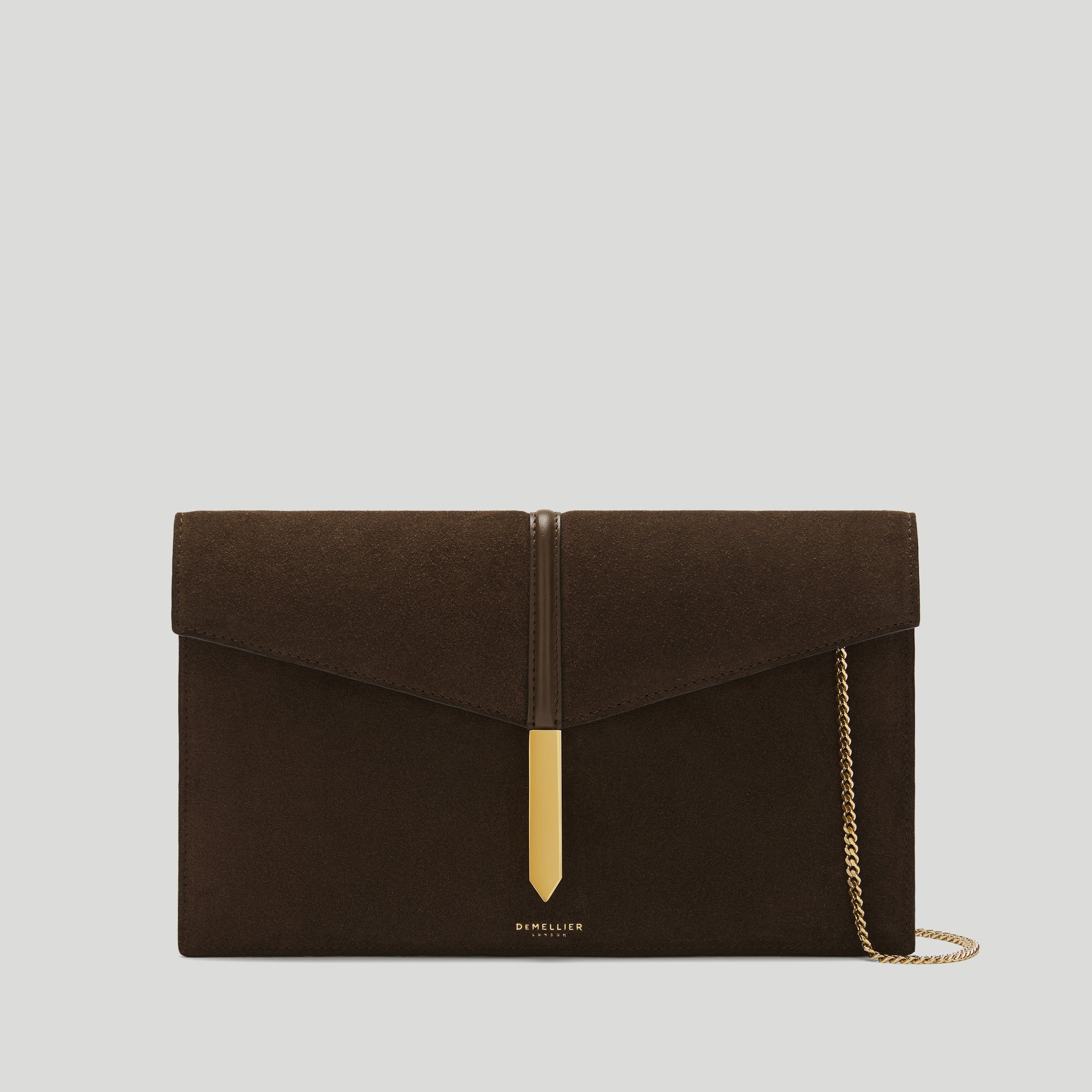 Handcrafted from sustainable materials. The Tokyo Clutch boasts a graceful envelope silhouette. adorned with the iconic magnetic gold arrow lock that has become synonymous with the Tokyo collection. The center of the flap is adorned with a stunning bombe detail. adding an extra touch of character.
